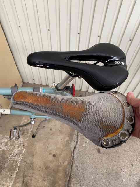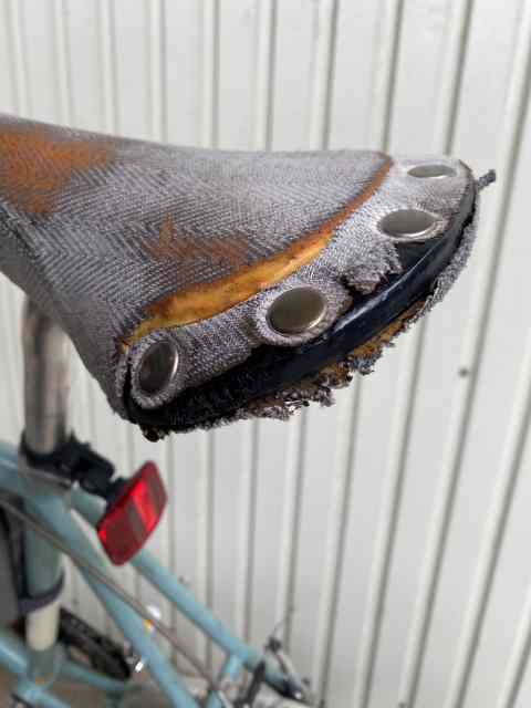 わたしの通勤の相棒、ビアンキのミニベロ。純正サドルがかなり劣化しておりまして、