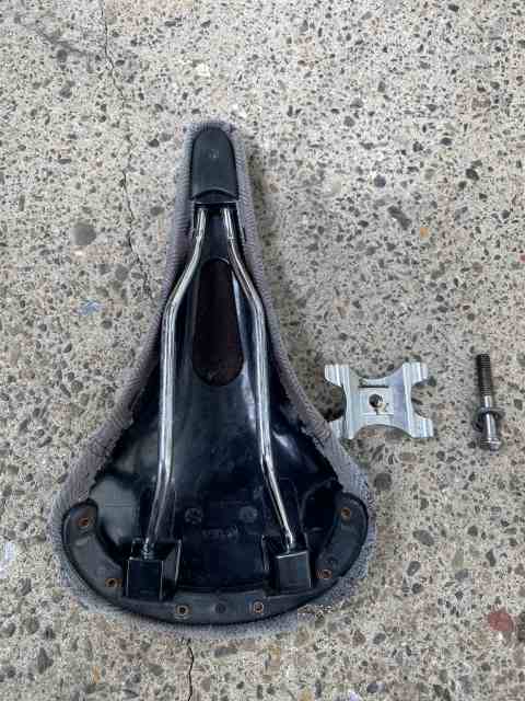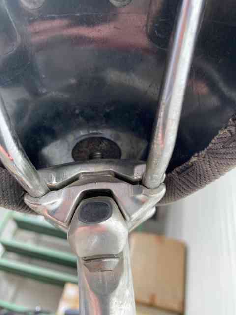 サドル裏の2本の鉄レールを専用金具でサンドイッチし、ボルト1本で固定されているんですね!初めて知りました笑 ↓こんな感じです↓