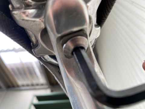 さっそく棒レンチを六角穴に入れ回します!※回す方向は普通のネジと一緒です。反時計回りで外せます!